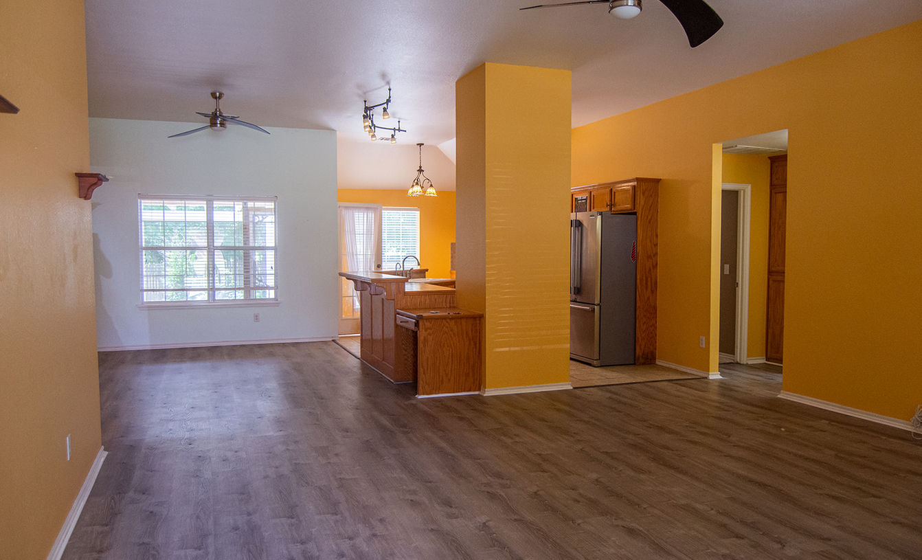 3 bed, 2 bath 2 car garage, oversized enclosed covered patio, sprinkler system, Refrigerator included. Backyard overlooks walking trails and the community green belt.